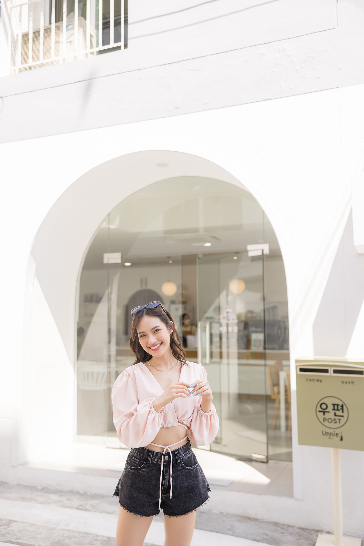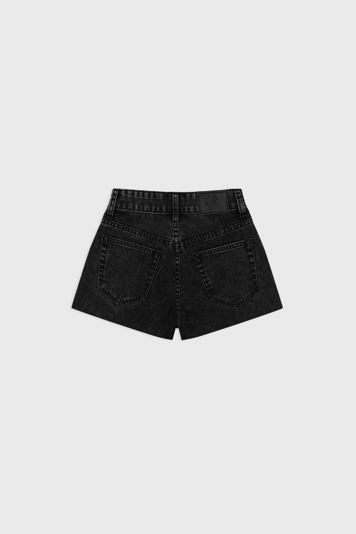 10-inch length, high-waisted, wide legs and raw hems shorts in blue